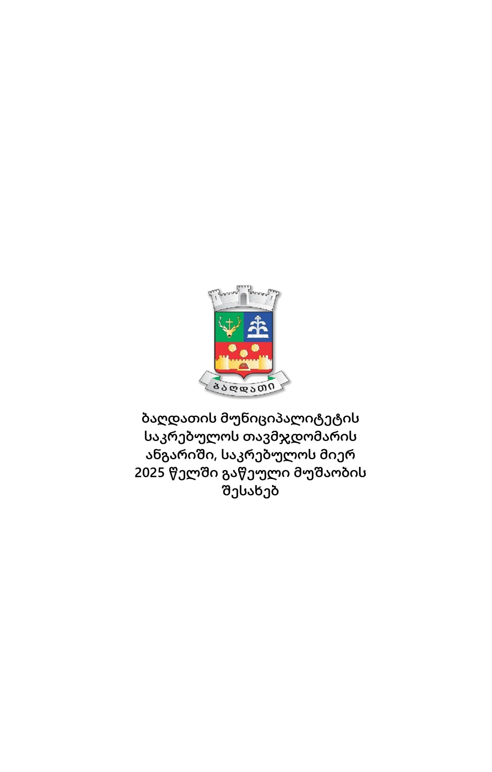 ბაღდათის მუნიციპალიტეტის საკრებულოს თავმჯდომარის გურამი კიკნაველიძის ანგარიში საკრებულოს მიერ 2025 წელში გაწეული მუშაობის შესახებ