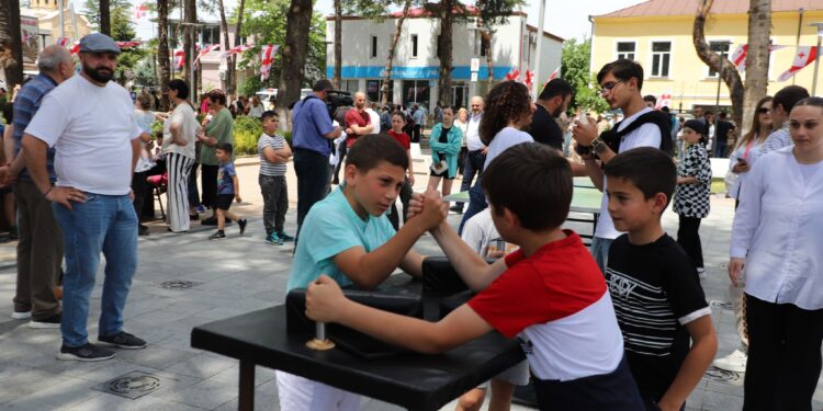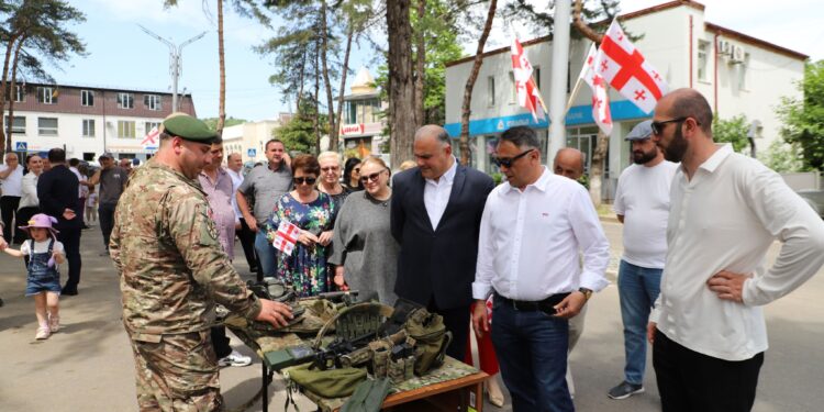 ახალგაზრდობის სკვერში და მიმდებარე ტერიტორიაზე, მთელი დღის მანძილზე წარმოდგენილი იყო საბრძოლო ტექნიკის გამოფენა. მუნიციპალიტეტში არსებულმა სახელოვნებო,სპორტულმა და საგანმანათლებლო ააიპებმა შემოქმედებითი კუთხეები და მუსიკალური ნომრები წარმოადგინეს. დღესვე გაიმართა მინი ტურნირი ნარდში, ჭადრაკში, მკლავჭიდსა და მაგიდის ჩოგბურთში. გამარჯვებული მონაწილეები თვითმმართველობის წარმომადგენლებმა დააჯილდოვეს. ახალგაზრდობის სკვერში, პირველი პარლამენტარი ქალების ფოტო გამოფენა მოეწყო.