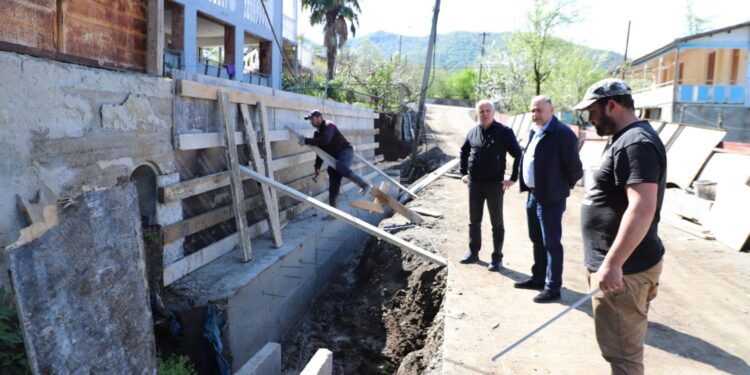 სტიქიის სალიკვიდაციო სამუშაოებია სოფელ ზედა დიმშიც, სადაც ეწყობა საყრდენი კედლები.